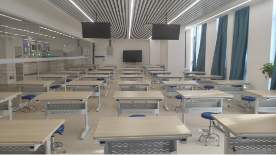 工程制图实训室主要面向智能制造、工业智能、机械设计制造及其自动化、机器人工程、电气工程及其自动化等专业,占地面积约110平方米,配备机械制图立体教学系统、50余台套机械制图测绘模型和绘图设备,可同时容纳50名员工的实验教学。