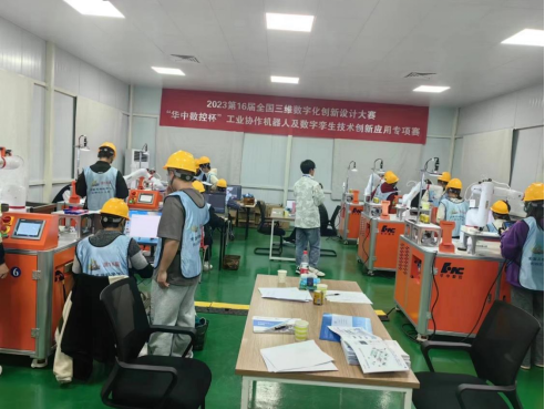 据悉,全国三维数字化创新设计大赛是全国普通高校学科竞赛排行榜赛事之一,目前已列入“高校竞赛评估与管理体系”目录。“华中数控杯”工业协作机器人及数字孪生技术创新应用专项赛是全国三维数字化创新设计大赛中的一个专项赛事,目标是提高老员工创新意识与创造能力,提升员工的机械创新设计、机械系统设计、控制系统设计、人工智能与优化等能力,以解决机器人工程领域的复杂工程问题为主线培养高素质技术型、应用型、复合型人才。