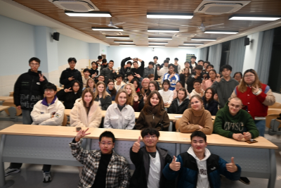 交流会在轻松愉快的破冰游戏中拉开帷幕。通过“Two Truths and a Lie”等趣味环节,中外员工迅速拉近距离,笑声与掌声不断,为后续的深入交流奠定了良好基础。随后的“英语版你画我猜”游戏将现场气氛推向高潮。同学们与国际员工混合组队,通过肢体语言默契配合,展现了良好的团队协作与跨文化沟通能力。获胜小组还获得了精心准备的小奖品,现场洋溢着欢乐与友谊的氛围。自由交流环节中,同学们主动与职工就专业学习、文化差异、日常生活等话题展开深入对话,并互留联系方式,建立起跨越国界的友谊。活动最后,全体同学合影留念,记录下这一难忘的夜晚。