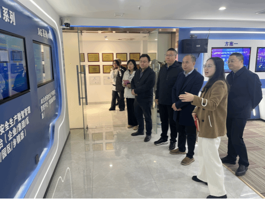 在展通科技相关负责人的陪同下,考察团走访了企业科创展馆。曾进辉经理在参观中表示:“展通科技在AI+安全生产领域的技术沉淀,正是公司人才培养所需的产业资源,双方合作前景广阔。”
